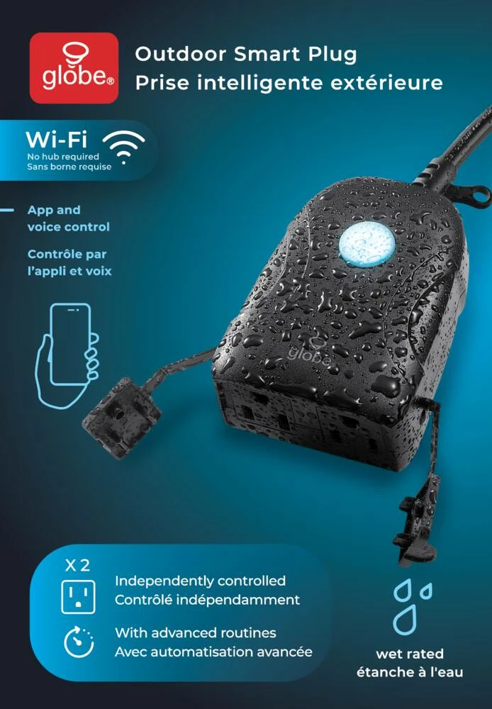 - Globe Outdoor Smart Plug works with Google Assistant or Alexa for voice control