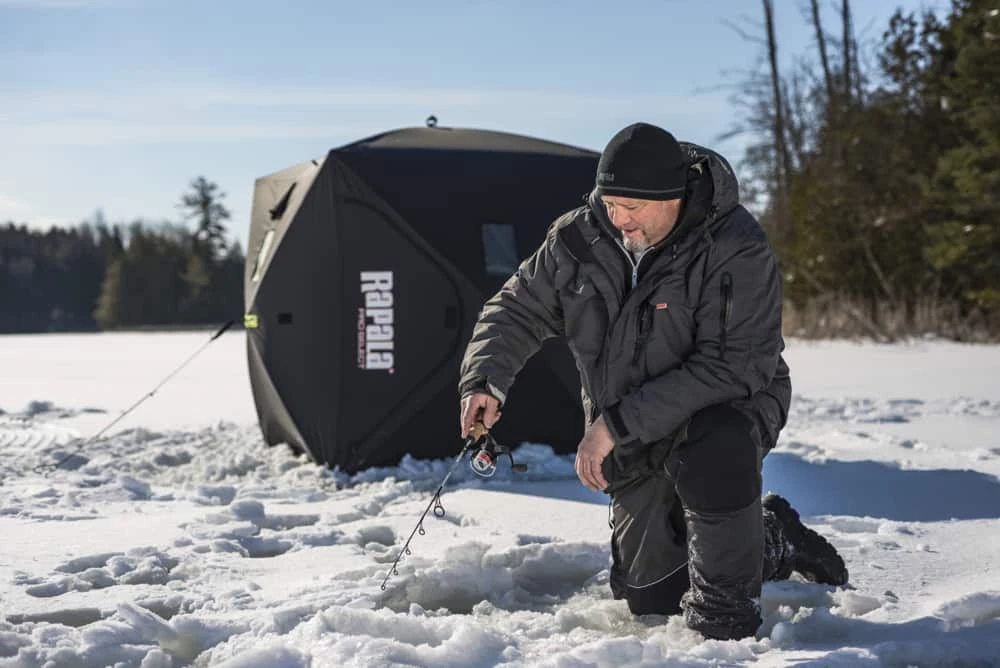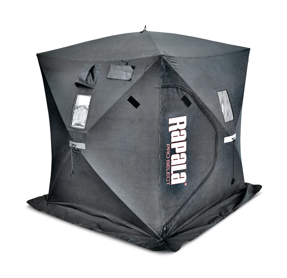 - Rapala Pro-Select Ice Fishing Shelter sets up quickly in 60 seconds or less